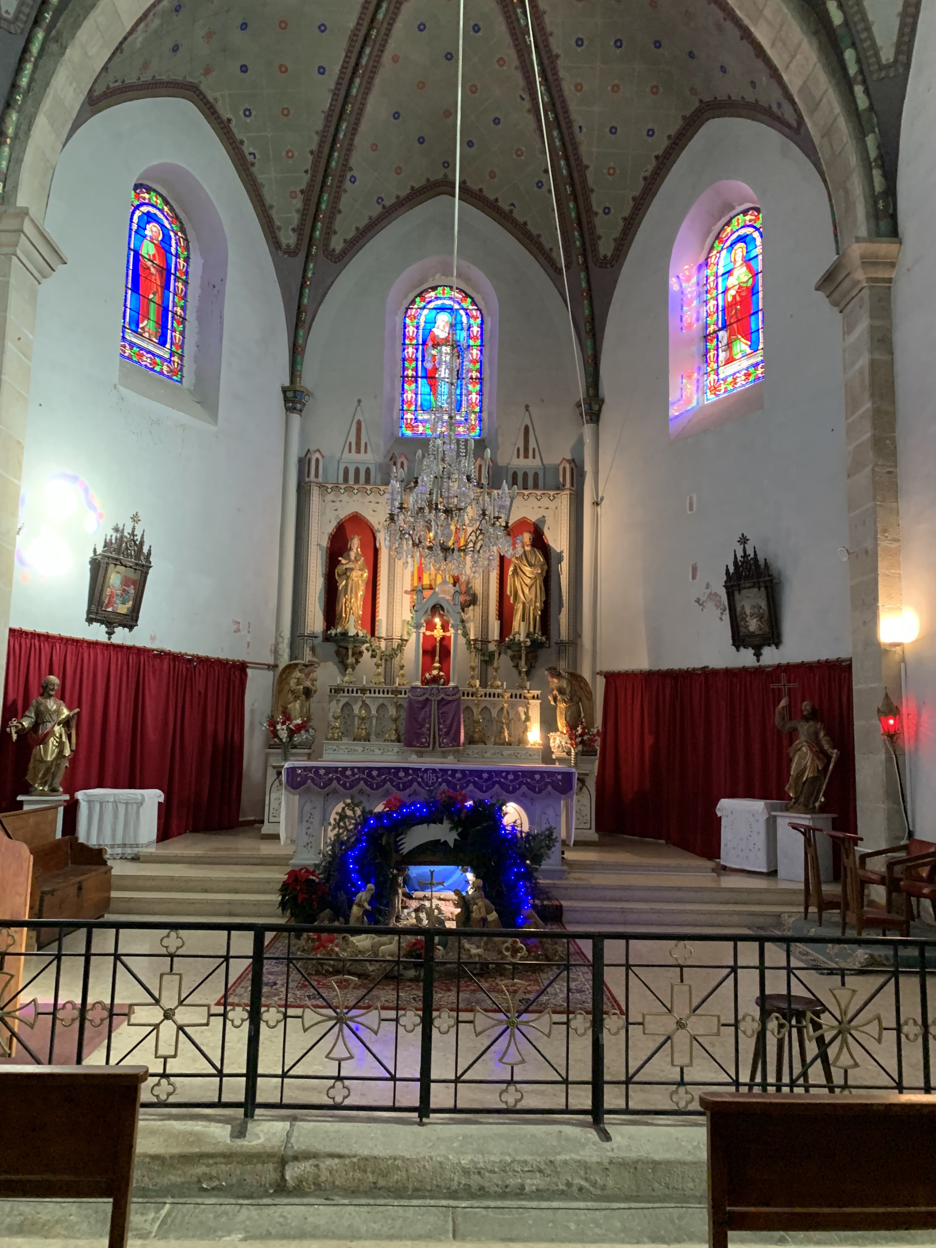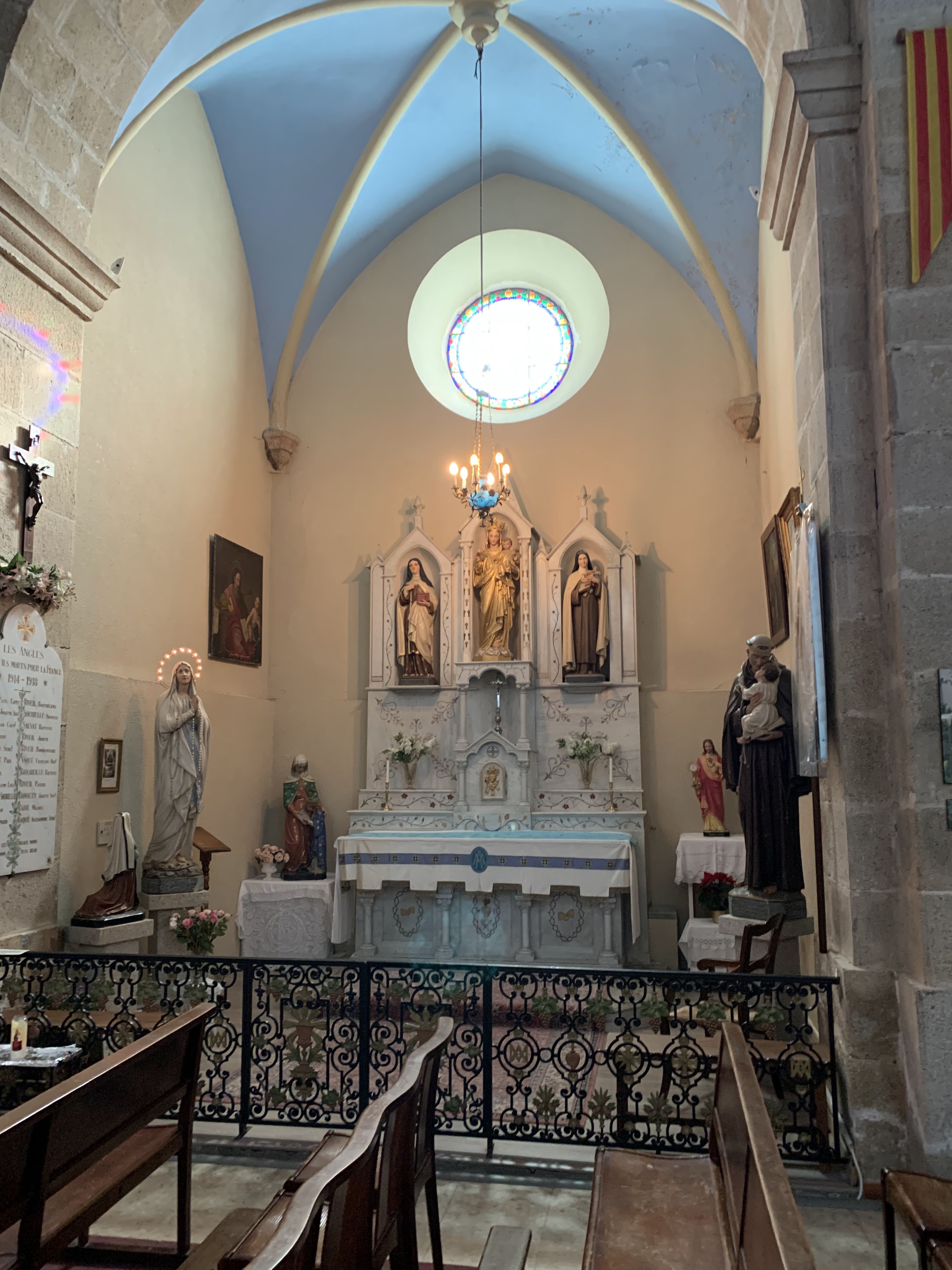 Église petite mais chaleureuse dans le centre historique de la ville des Angles (France). Si vous visitez la ville à pied, c'est l'un des arrêts recommandés.