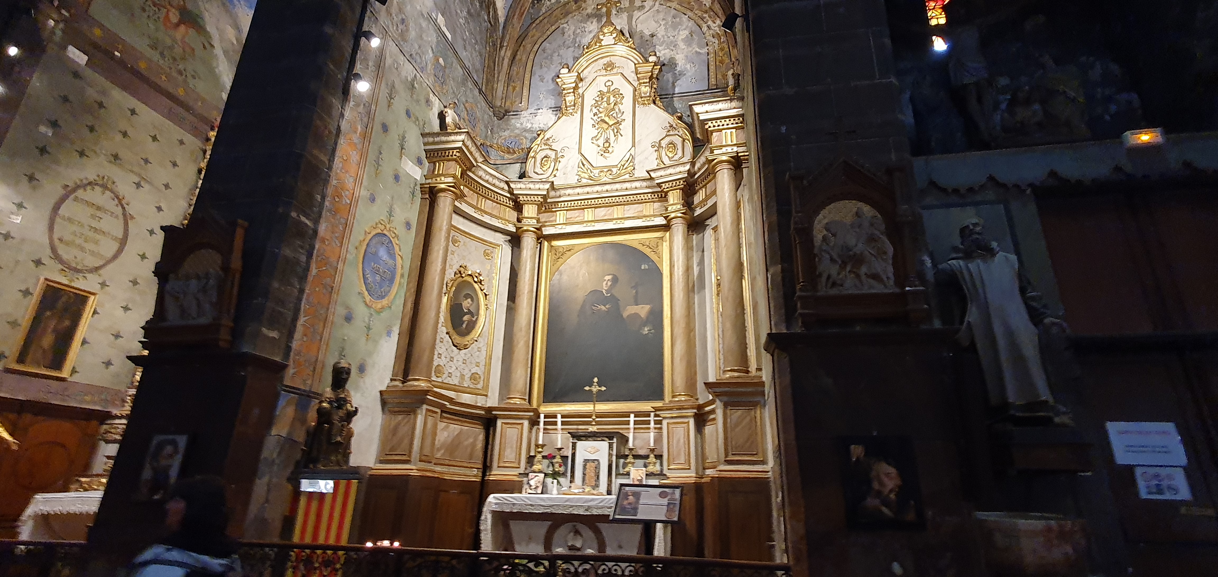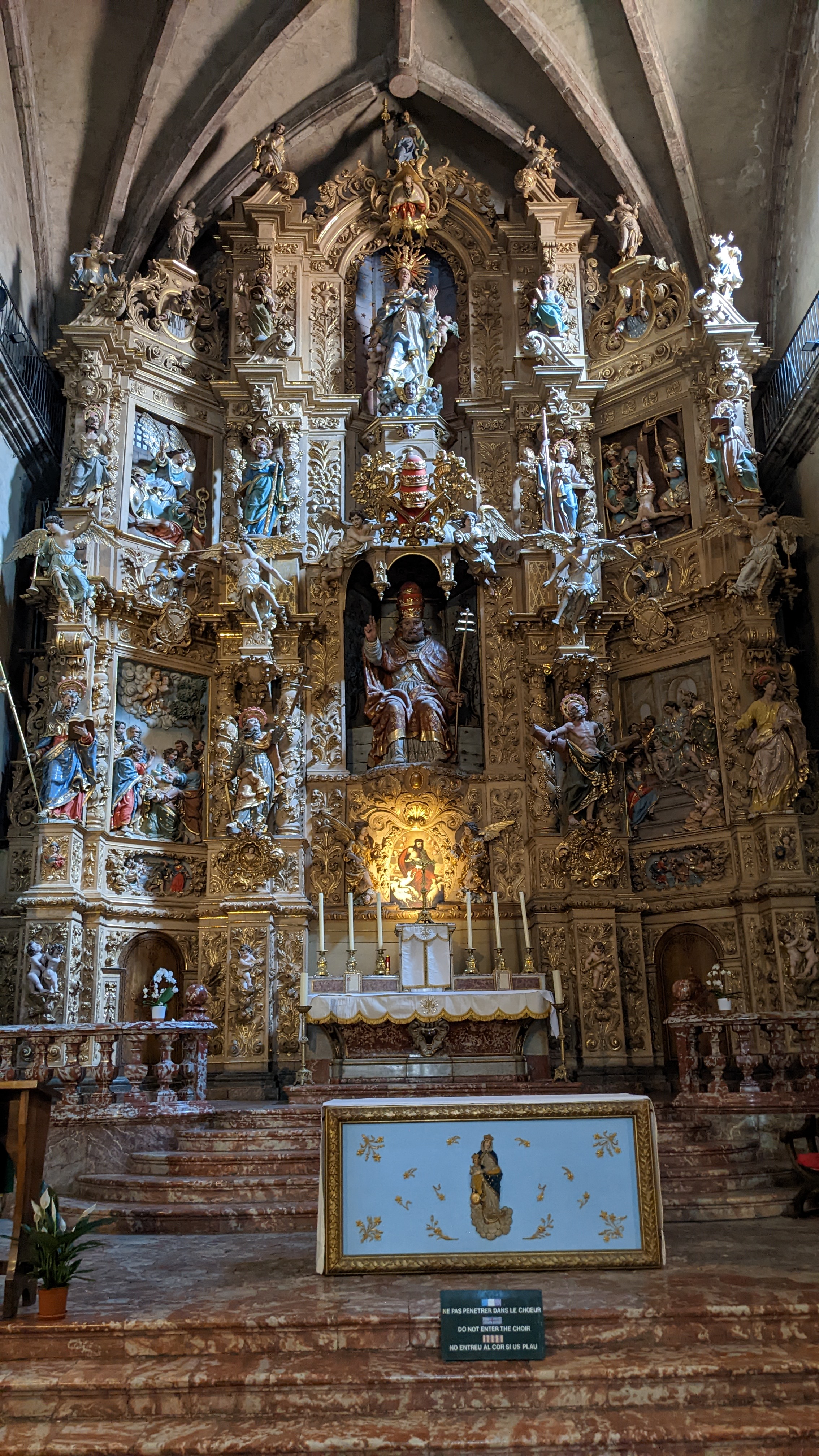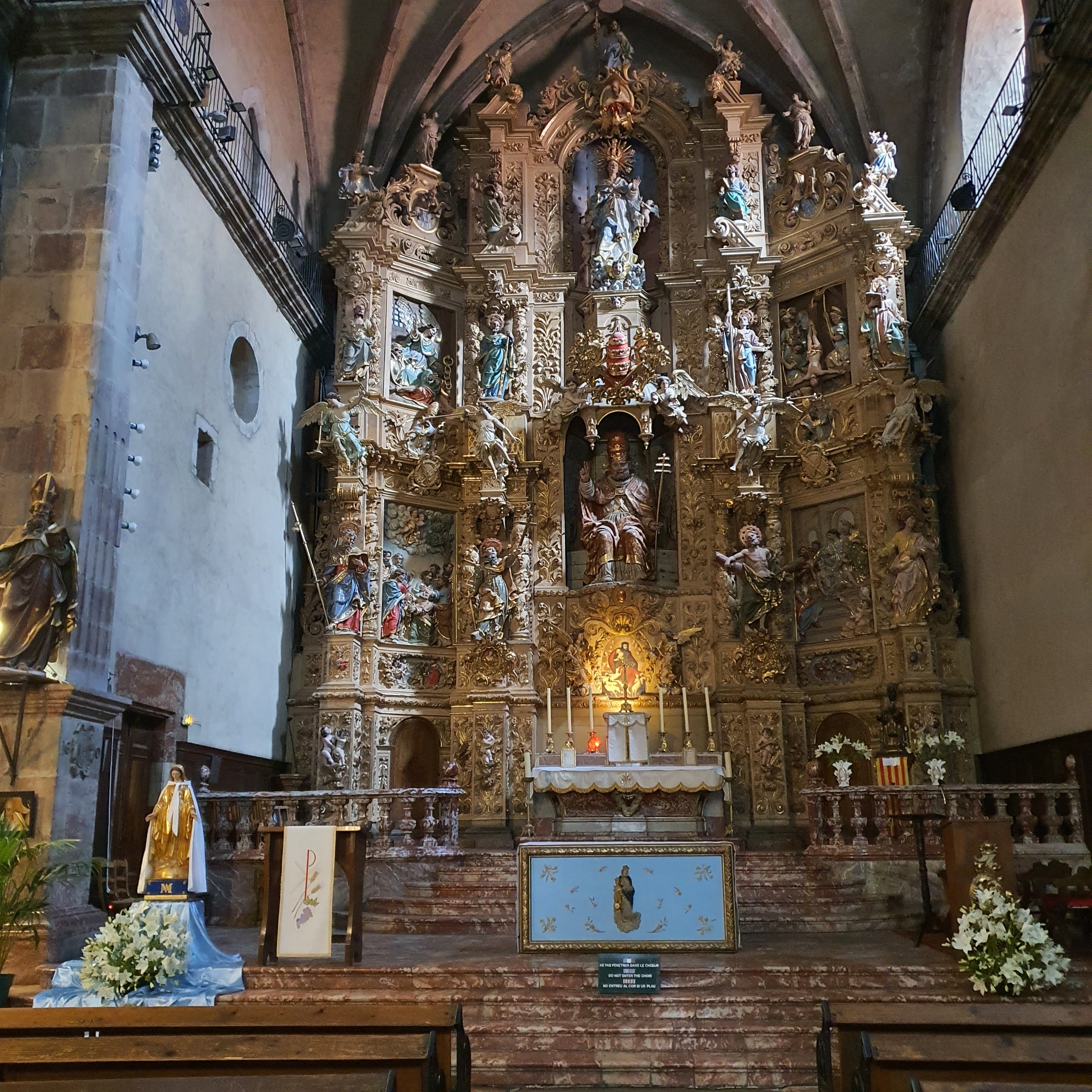 Présence de cet immense retable baroque, magnifique Cette église de Prades est superbe, murs encore peints A admirer