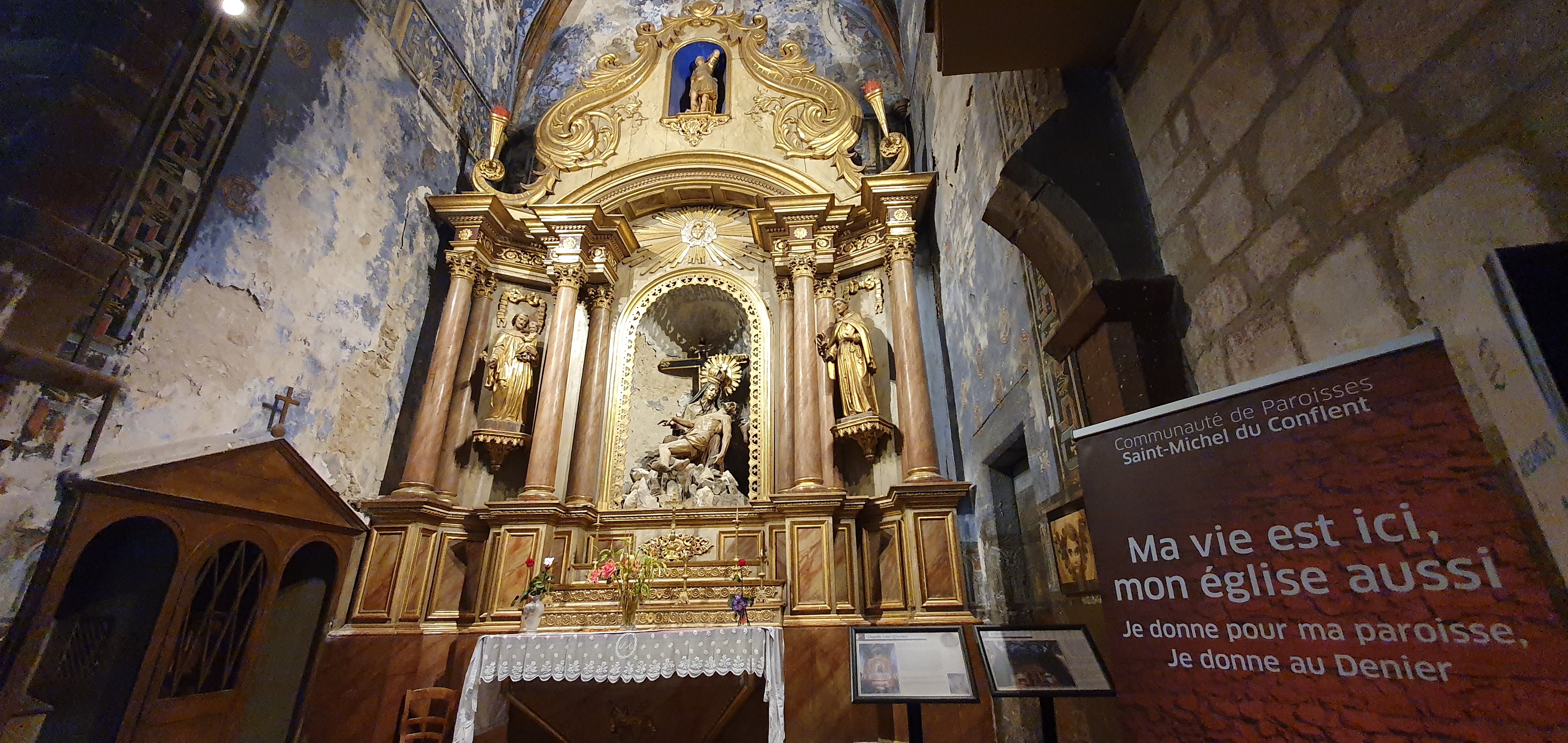 Magnifique retable. C'est dommage que le clocher soit en construction et soit couvert