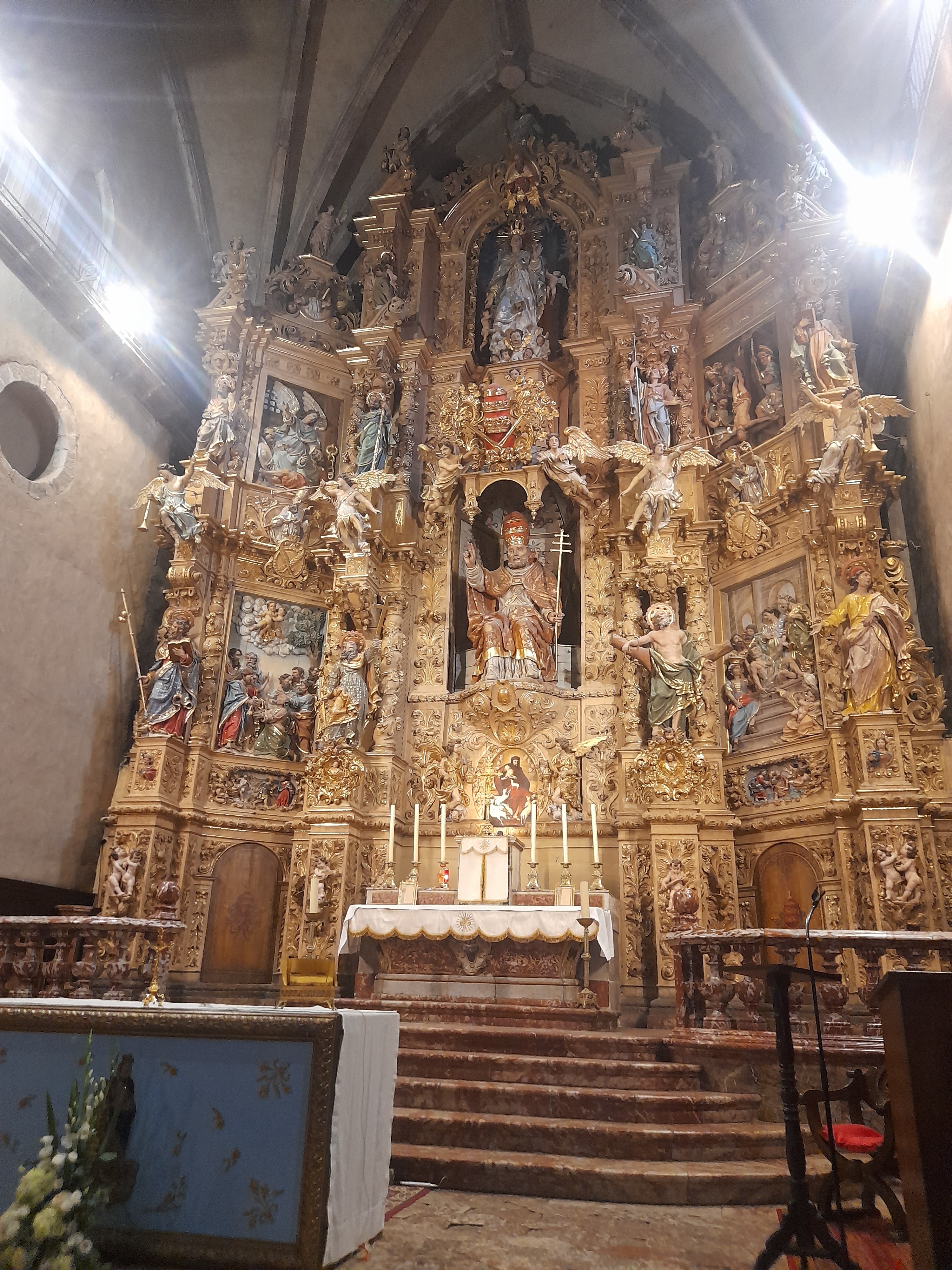 Magnifique retable. Richement décoré, avec la fiche explicative ce trouvant à gauche de l'autel, l'histoire de sa construction est accessible. Les chapelles latérales sont également belles, bien qu'éclipsé par le retable, elles valent le coup d'œil. Eglise avec un fond musical très agréable le jour de notre visite.