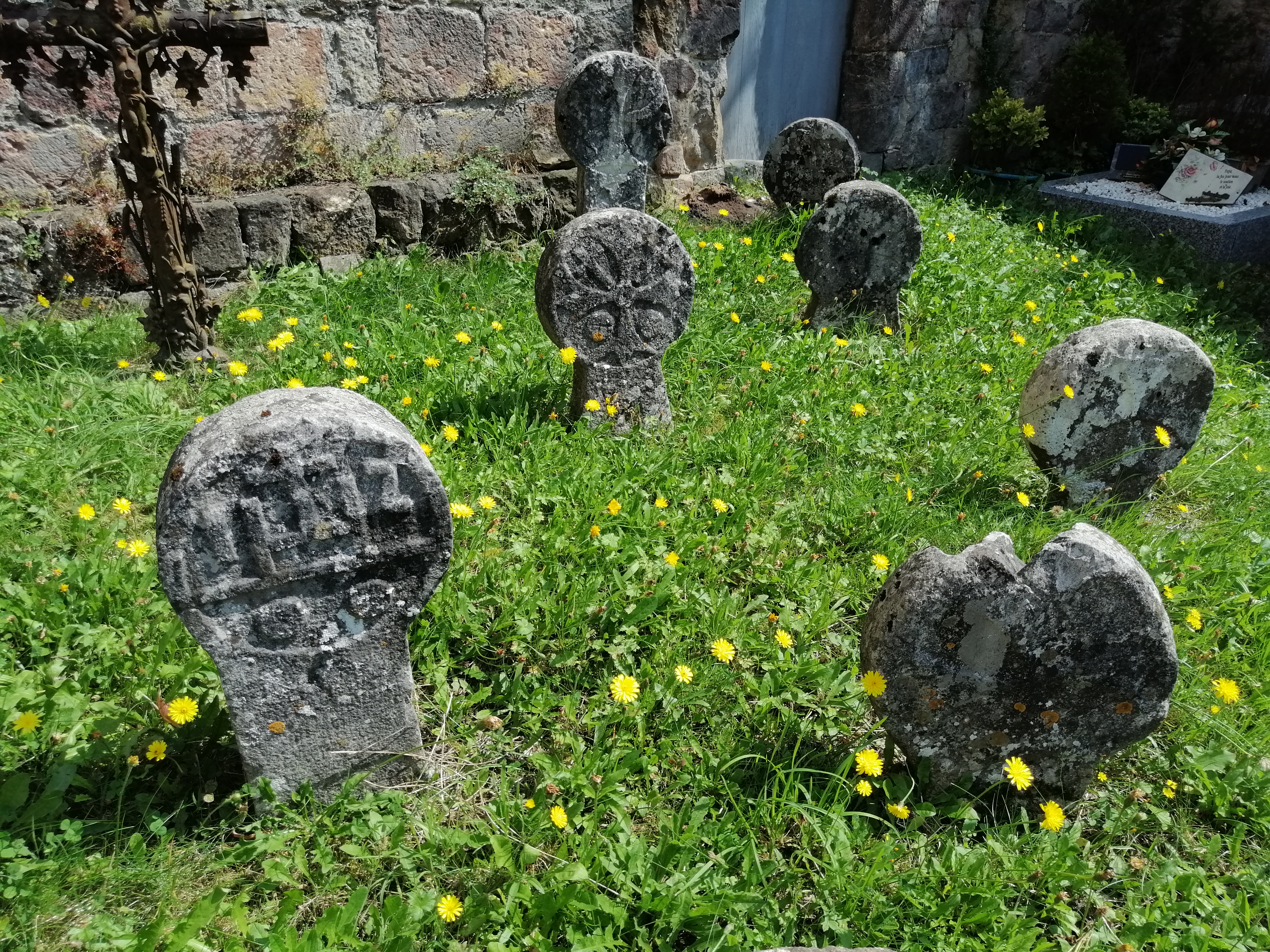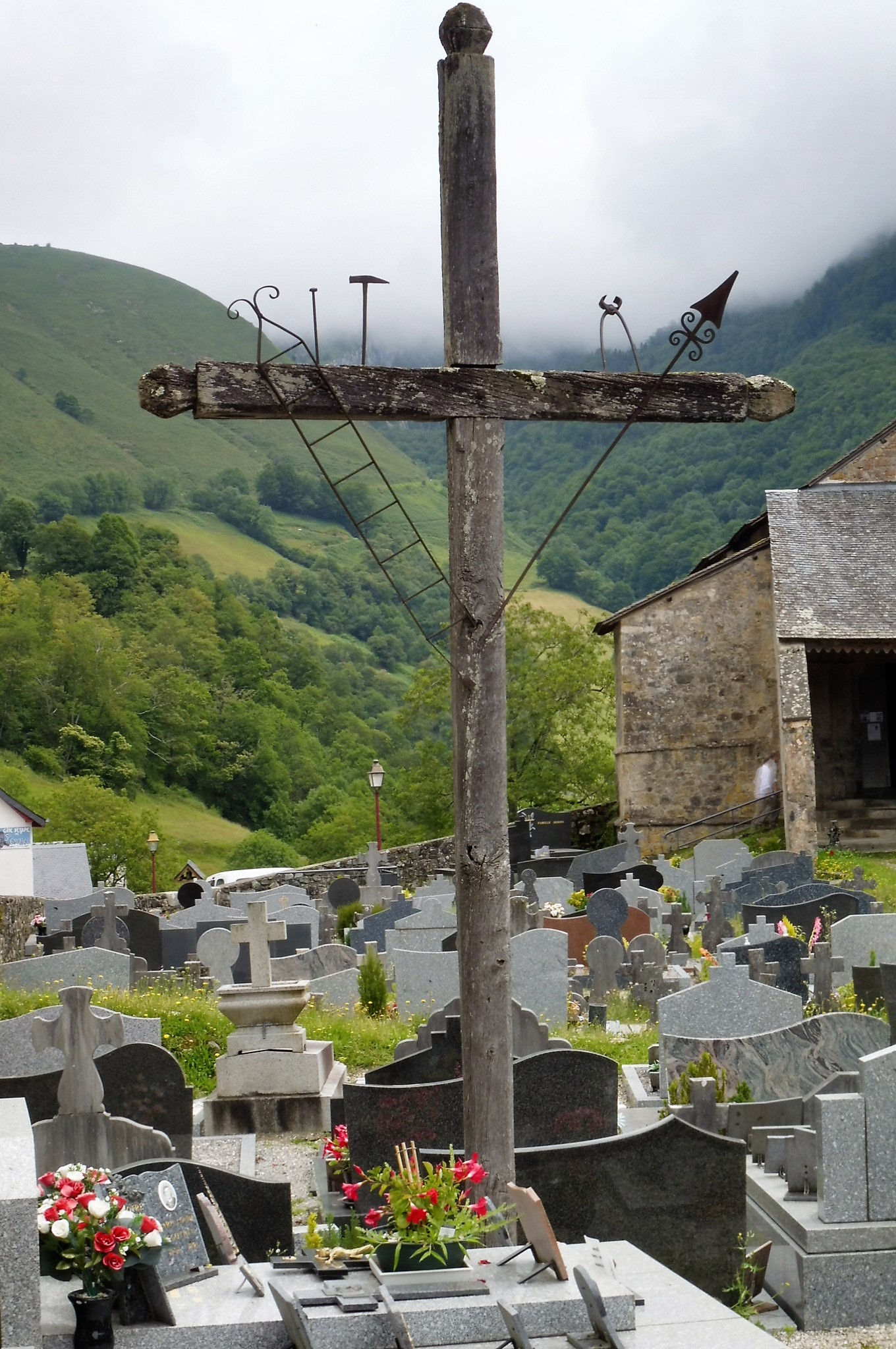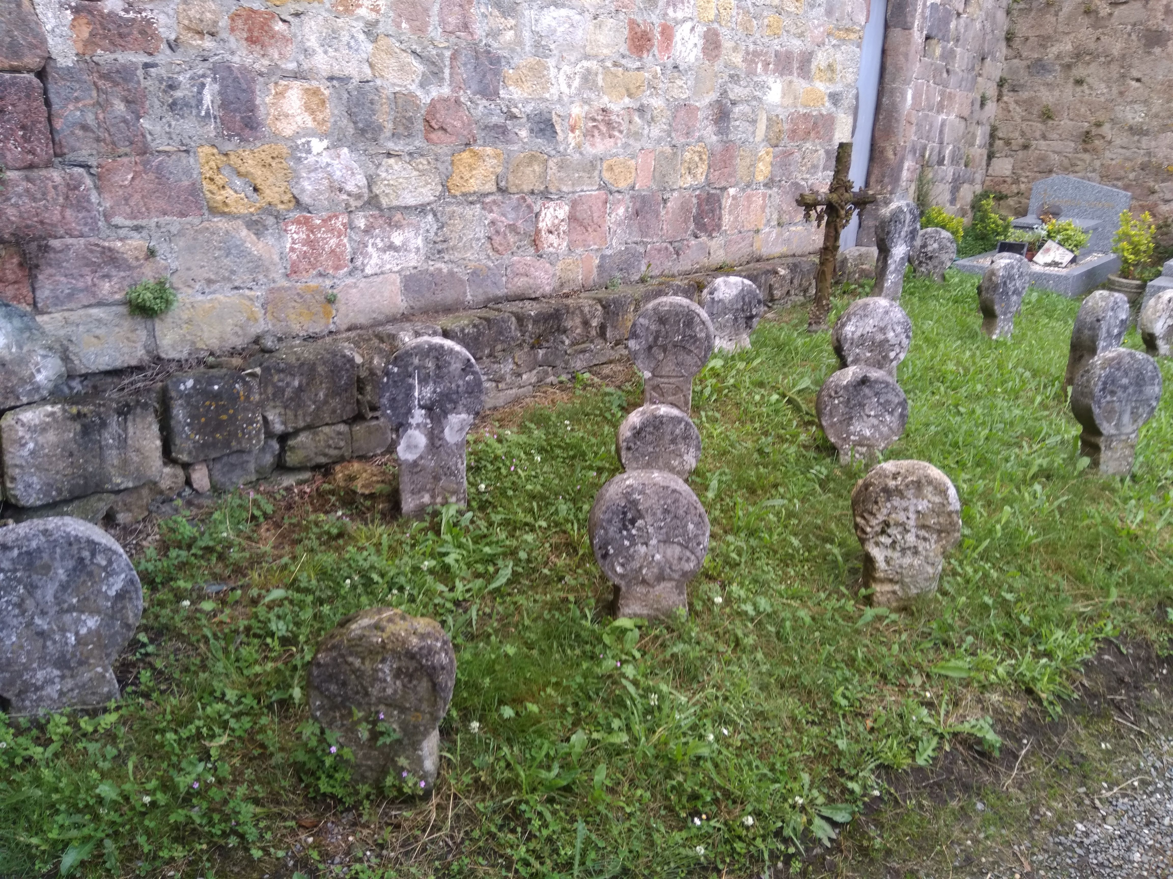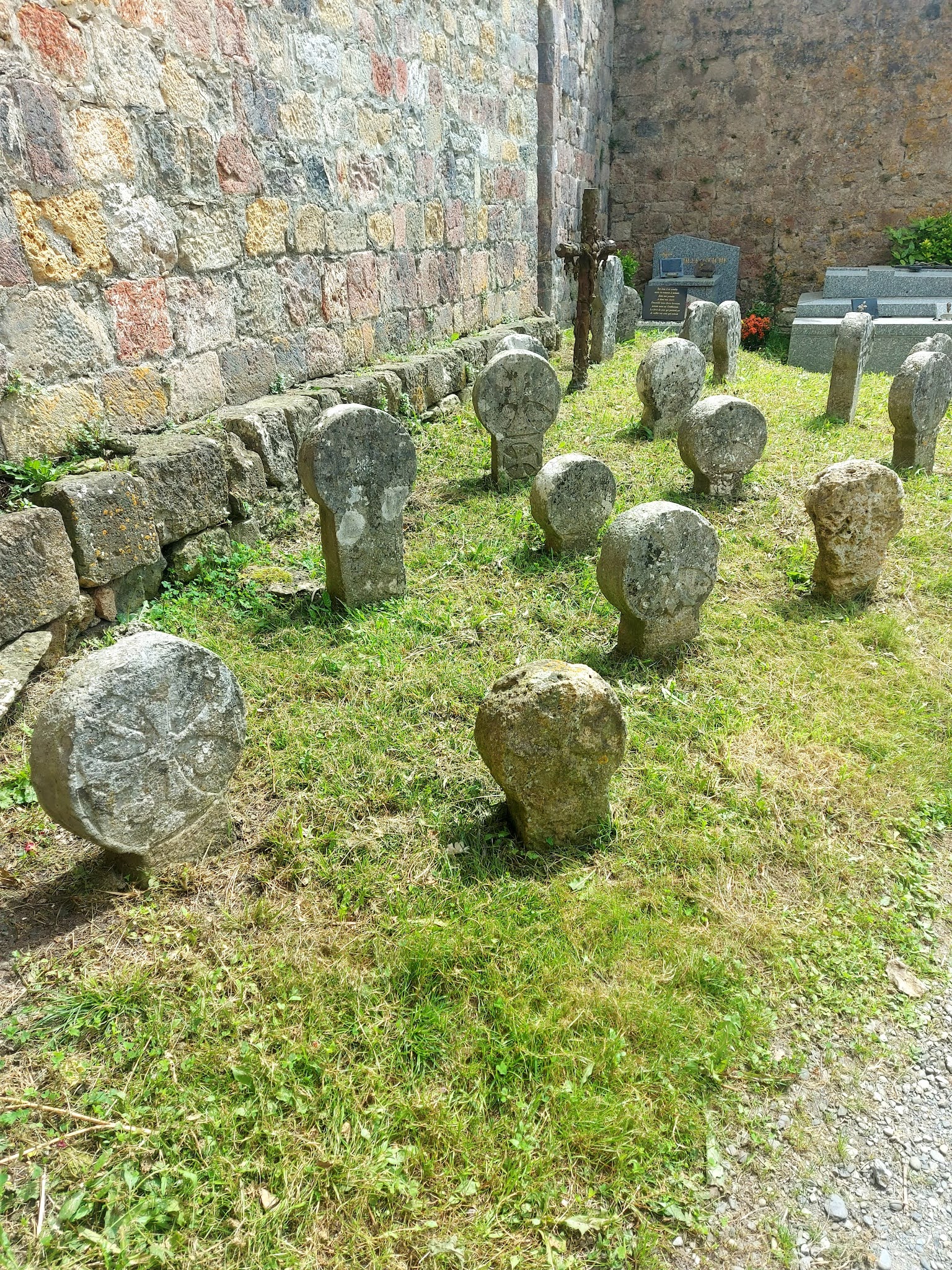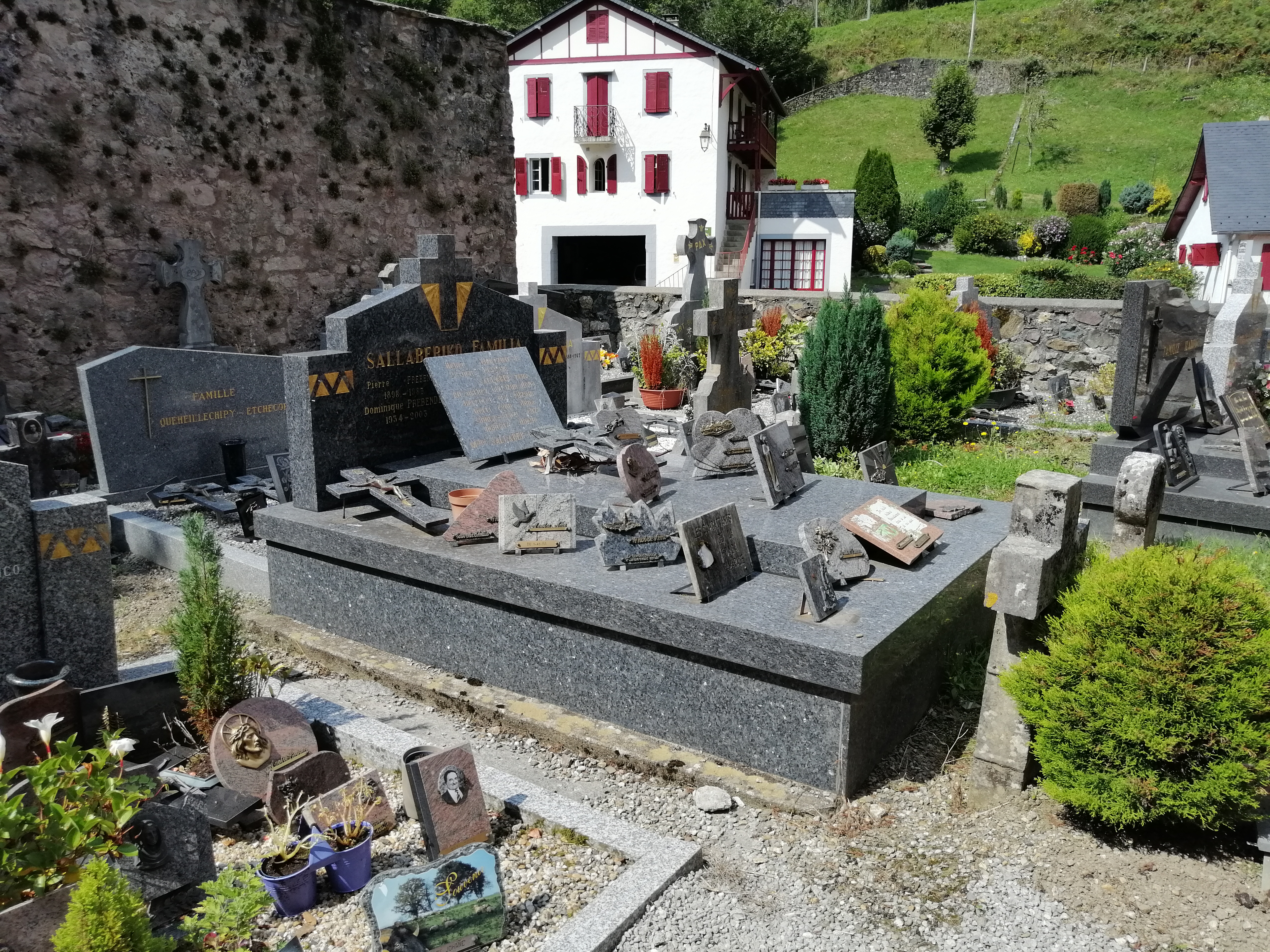 De jolis vitraux et des stèles très anciennes au cimetierre laissant apparaître des croix basques.