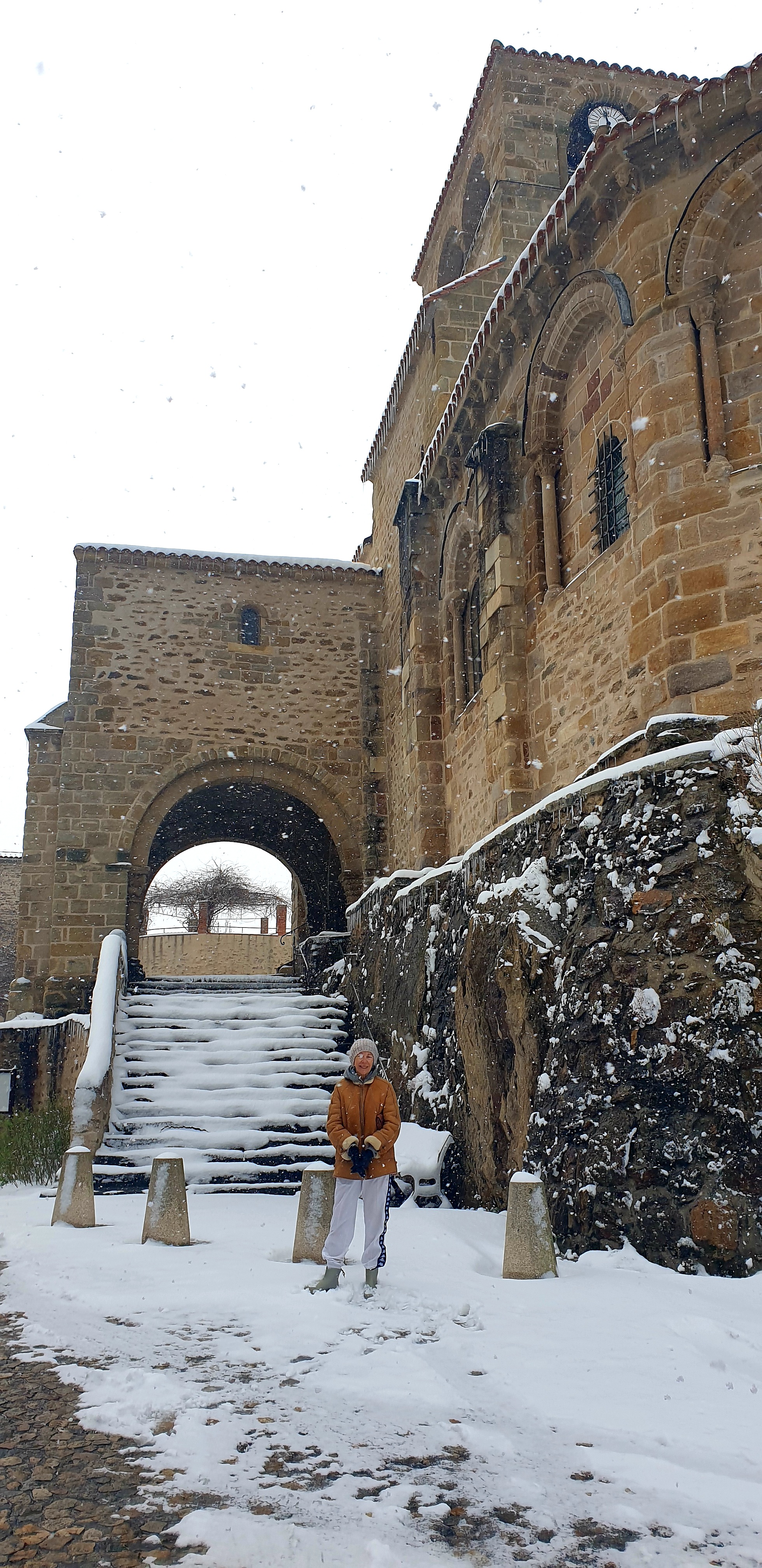 Église romane avec de beaux murs et plafonds en partie peints. Le sacristain fournit une explication en français.