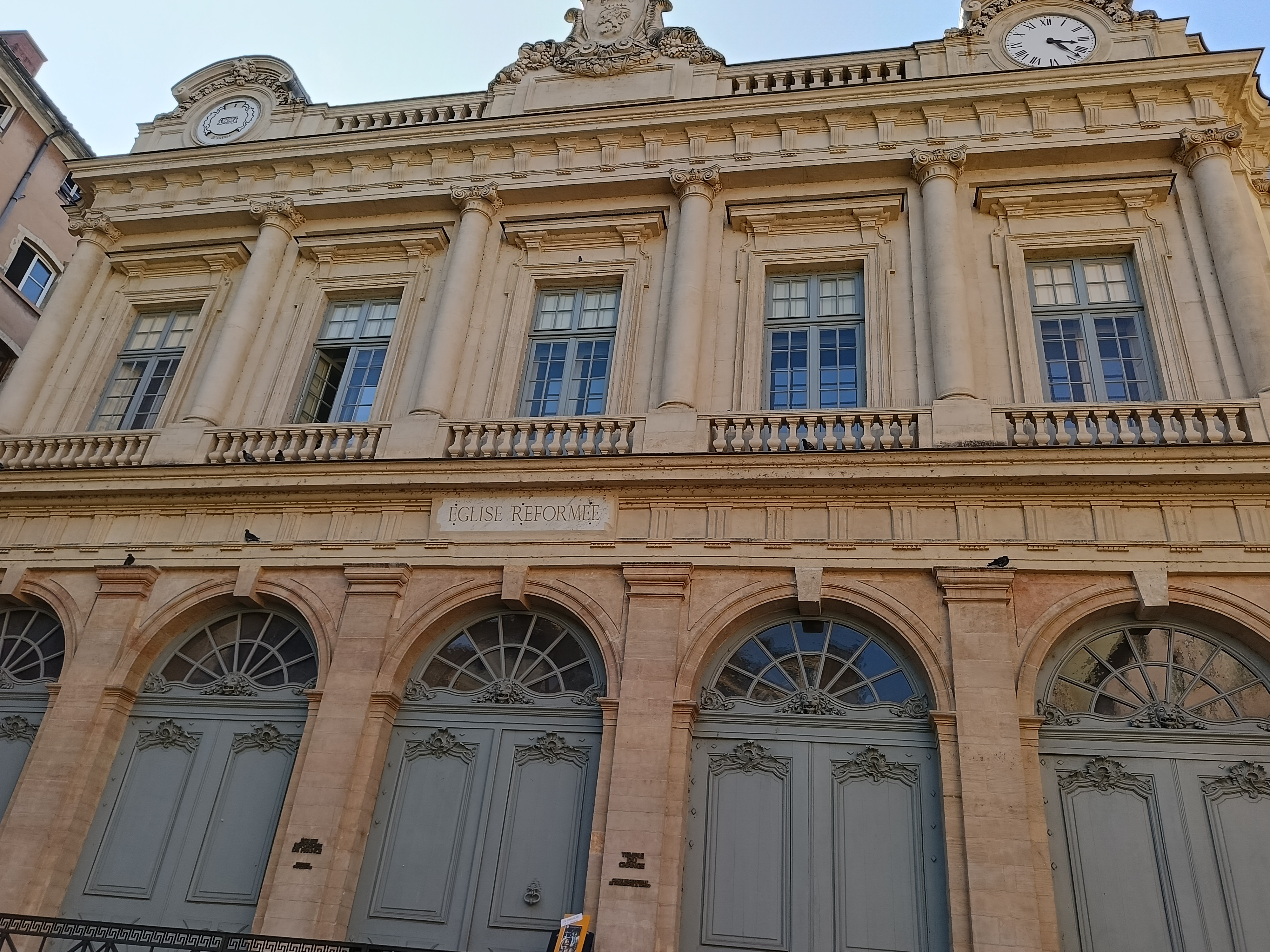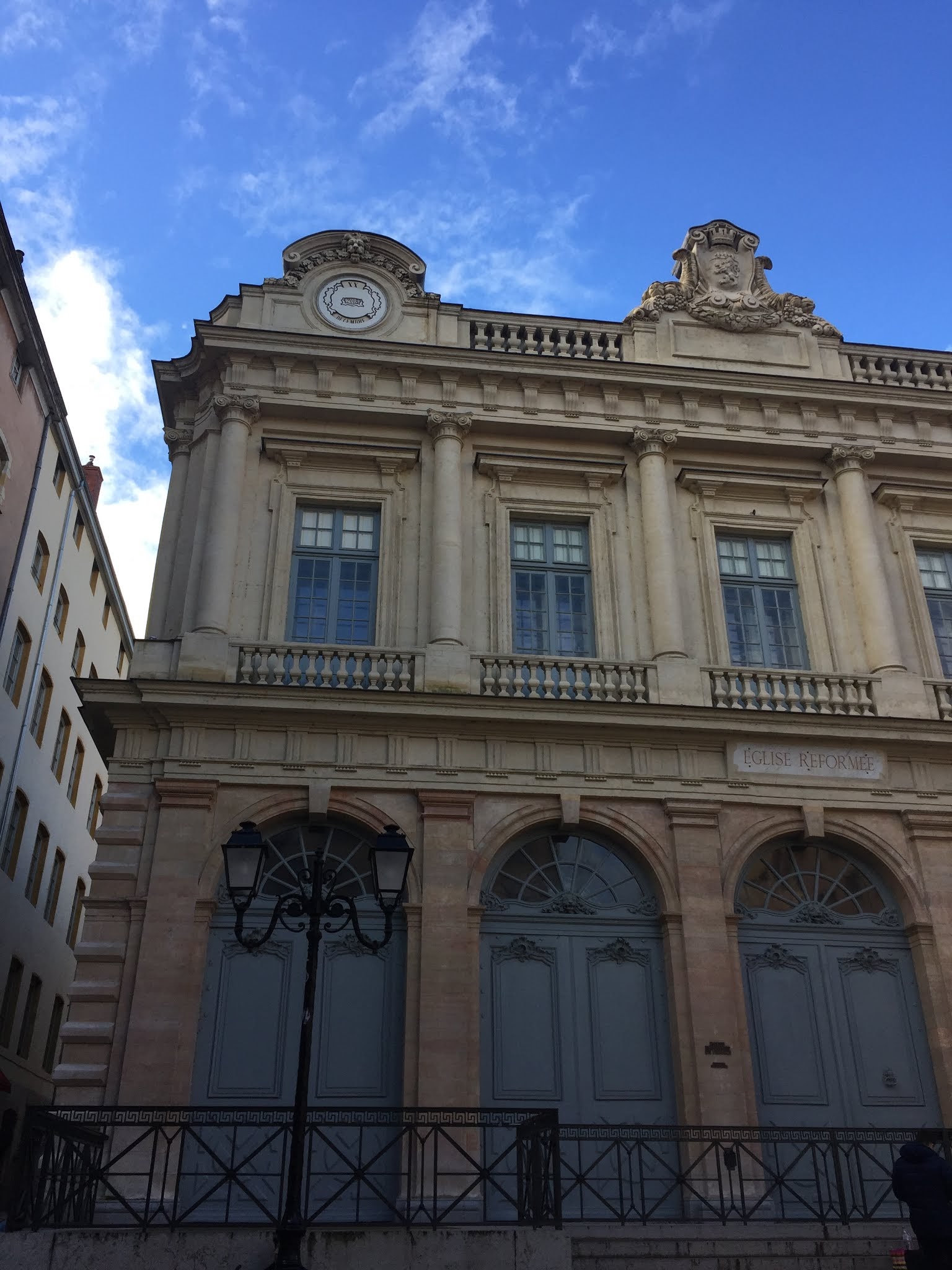 Le grand classicisme signé Soufflot pour cet ancien bureau de change recyclé en temple protestant lorsque la monnaie a pris place de la spiritualité. A un jet de pierre de la cathédrale, il a fallu du temps pour laisser venir les dissidents en rupture de ban. Superbe bâtiment maintenant bien mis en valeur et dont l'intérieur est également très accueillant.
