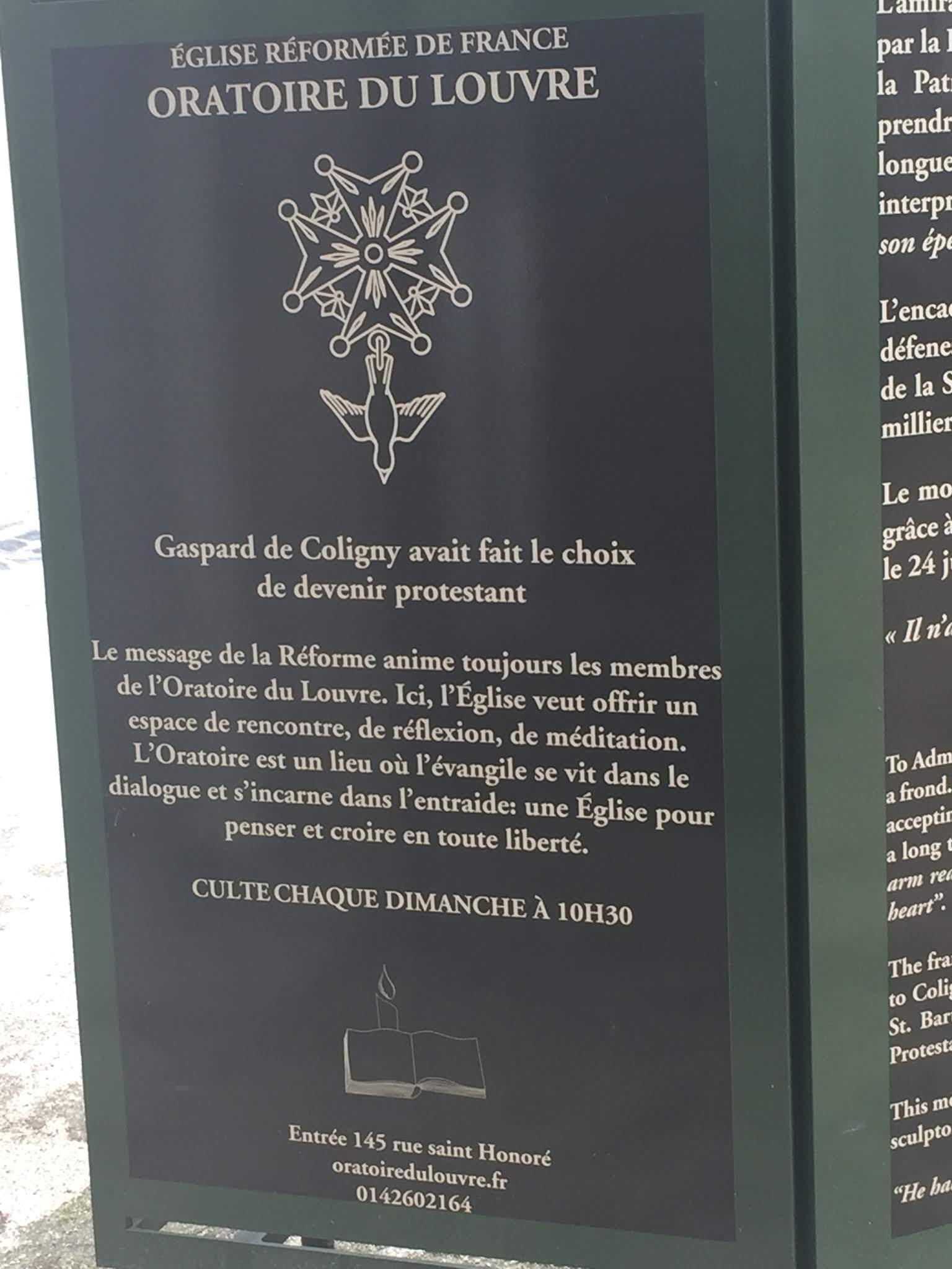 Pour ceux qui aiment l'histoire, concernant l'histoire de la Réforme protestante, ce lieu est un point de repère pour tous ceux qui visitent Paris, l'une des premières églises protestantes de France et des offices y ont encore lieu aujourd'hui !! À l'intérieur, il y a des hommages aux martyrs, une statue de l'un des leaders de la réforme décédé pendant l'inquisition et même la possibilité de prendre un café à l'intérieur de l'église.
