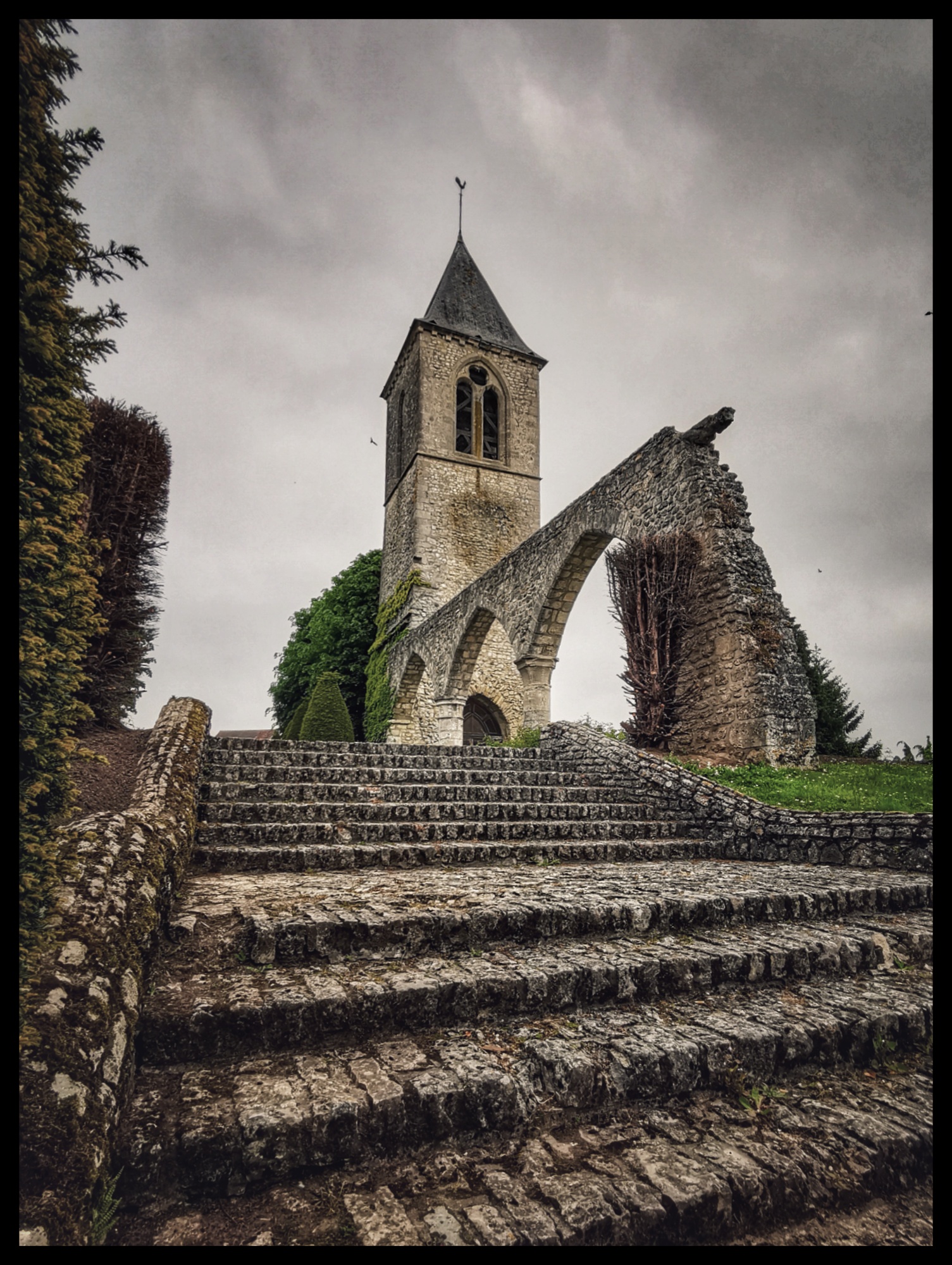 Eglise datant des 10ème et 13ème siècles presque totalement détruite. Sont encore visibles trois arcades ainsi que le clocher.