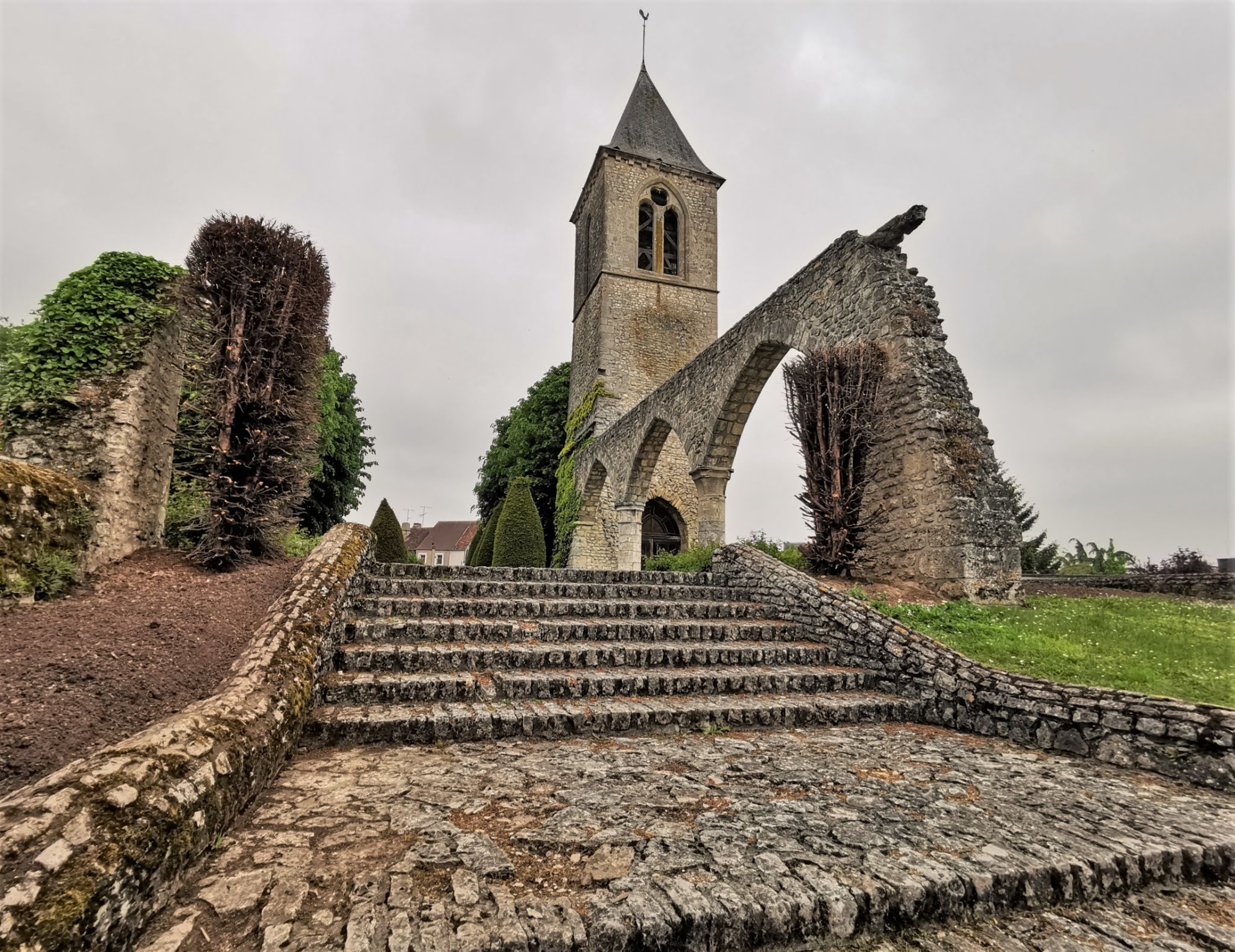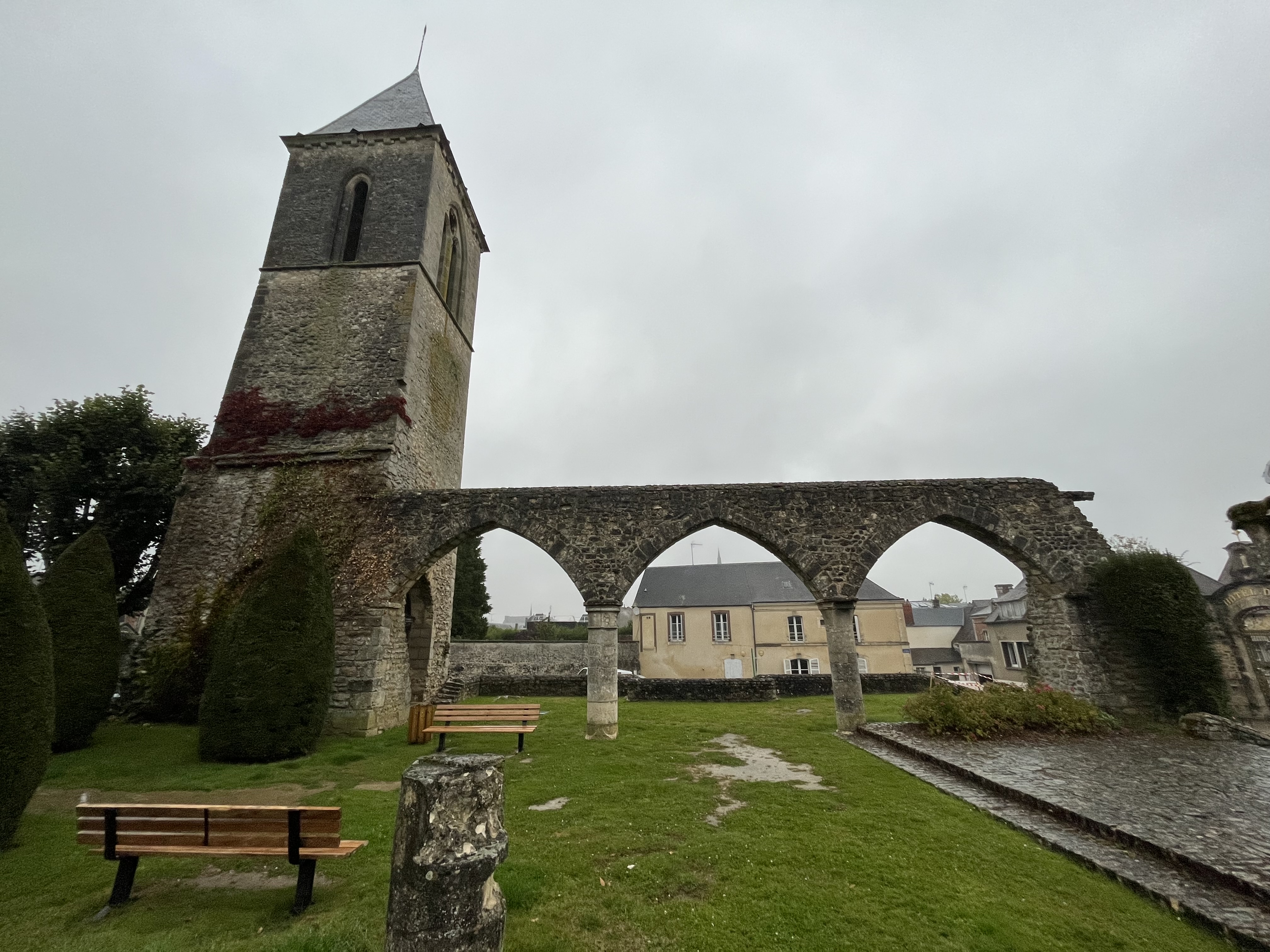 Un grand pan de mur qui est le vestige de l'ancienne église de Sées. Très joli lieu!