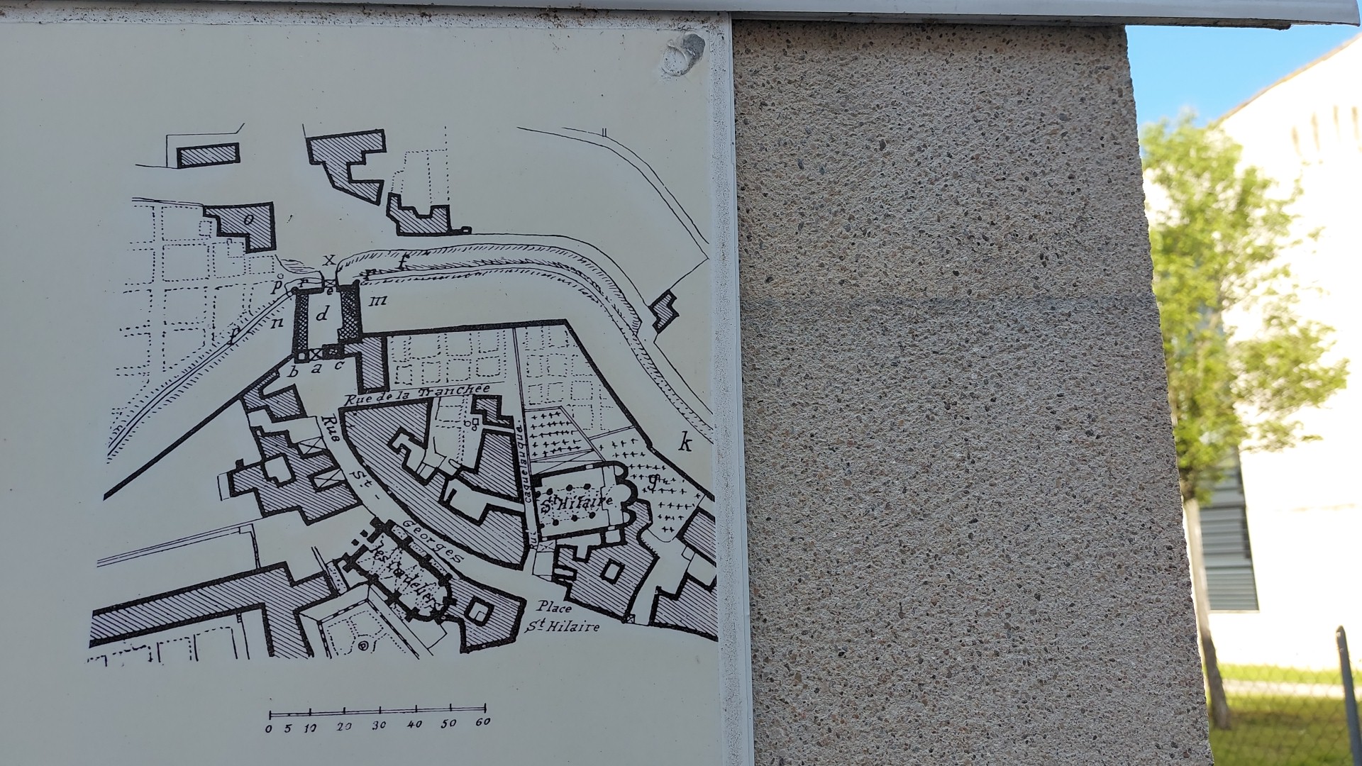 Vestiges de l'ancienne église Saint-Hilaire dite tour des pénitents. Méconnue parce que longtemps cachée aux regards, l'ancienne église Saint-Hilaire est pourtant l'un des édifices les plus anciens de la ville d'Agen inscrit à l'inventaire supplémentaire des monuments historiques par arrêté du 20 juin 1950. Il y eut d'abord une église romane au 12e siècle à nef unique prolongée par un chœur formé d'une travée droite sensiblement plus étroite que la nef suivie par l'hémicycle de l'abside. Il y eut ensuite un agrandissement de l'église au début du 13e siècle. Les murs furent montés à une hauteur suffisante pour permettre de couvrir l'ensemble des 3 nefs d'un grand toit unique. La tour hexagonal contemporaine de l'agrandissement de l'église est entièrement construite en brique. La Commune est sur le point de restaurer la toiture du clocher de l'ancienne église Saint-Hilaire. Aux débuts du xixe siècle, l'édifice était dans un état déplorable dû à mauvais entretien. Les habitants du quartier ont obtenu le transfert du service paroissial dans la chapelle du couvent des Cordeliers, actuelle église Saint-Hilaire, entraînant la déchéance de l'ancienne église. Ce transfert fut effectif en 1826. cette église (le vieux Saint-Hilaire) fut alors affectée à la confrérie des pénitents blancs. En 1861, Le plan d'alignement de la ville d'Agen entraîna la démolition de la façade ouest et de la 1ère travée de la nef. 6 mètres de moins! Le cimetière disparut aussi. Puis ce fut un entrepôt, un magasin jusqu'à l'incendie de 1913. Ensuite une maison fut construite dans les ruines. Après la guerre un atelier de mécanique s'installa au Sud (emplacement de l'ancien presbytère et de son jardin).